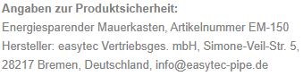 - Teleskoprohr für Wandstärken von 310 bis 520 mm Wandstärke (Montage ab 195 mm Wandstärke möglich durch bauseitiges Kürzen)