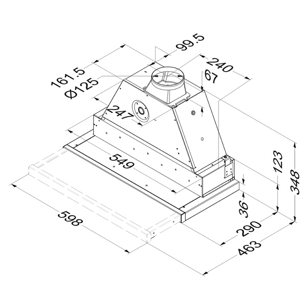 60 cm breite Flachschirmhaube zum Einbau in den Hängeschrank. Mit herausziehbarem Schirm und sehr leisem Motor für Abluft oder Umluft.