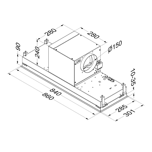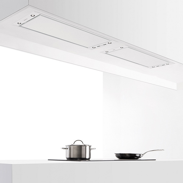 86 cm breiter Lüfterbaustein zum Einbau in einen Hängeschrank, Gipskarton- oder Holzumbau. Mit LED-Licht und sehr leisem Motor für Abluft oder Umluft.