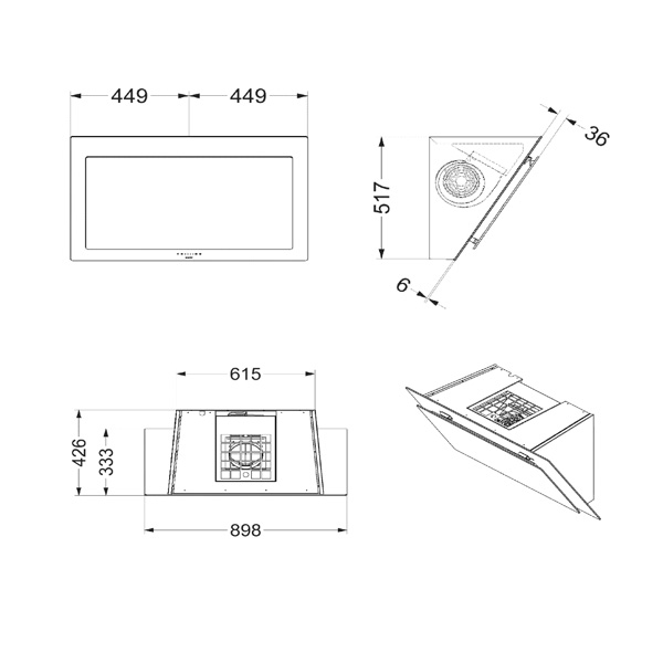 Kopffreihaube mit Randabsaugung Umluftversion inklusive MONOBLOCK-Kohlefilter