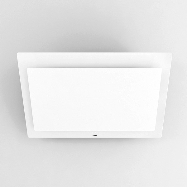 90 cm breite Kopffreihaube zur Montage an der Wand mit weißem Glas, LED-Beleuchtung und sehr leisem Gebläse